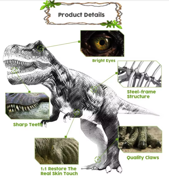 Premium Quality: Constructed with durable silicone skin and a reinforced steel frame, this animatronic is built for long-term use in high-traffic environments like theme parks and museums while maintaining its lifelike appearance.